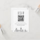 Um cartão de código de QR rsvp de casamento com uma bela linha estilizada representando a cidade de Londres. Substitua o código QR por um que apresente um link para o seu site para ajudar a facilitar a resposta ao evento de seu casamento para seus futuros convidados.