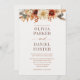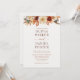 Celebre seu dia especial com tudo isso em um convite de casamento floral de outono, com matizes de outono e florais elegantes pintados à mão. Este cartão maravilhosamente projetado inclui seus detalhes de casamento, um cartão postal RSVP rasgado e um código QR para RSVP fácil ou acesso ao site — tudo em um layout coeso. Os tons quentes de ferrugem, terracota, ouro, e burgundy profunda evocam o charme da estação, fazer-a perfeita para casamentos de outono, rústicos ou inspirados em boho.
