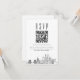 Um cartão de código de QR rsvp de casamento com uma lindíssima linha estilizada representando a cidade de Pittsburgh. Substitua o código QR por um que apresente um link para o seu site para ajudar a facilitar a resposta ao evento de seu casamento para seus futuros convidados.