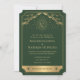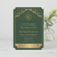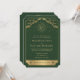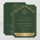 Adicione um toque de magia celestial ao seu grande dia! Estes convites de casamento góticos antigos apresentam um design de inspiração tarot com um sol radiante, lua, estrelas e nuvens em ouro contra um fundo verde. A parte de trás apresenta os detalhes do seu casamento e um Código QR. Personalize-o para as suas necessidades. NOTA: O ouro apresentado nesta design NÃO é folha de alumínio real.
