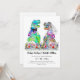 Alegra-te a vocês, convidados com este engraçado dinossauro temido convite de casamento com noiva de dinossauro colorida e noiva em um prado colorido de flor silvestre. Detalhes de RSVP do site e código QR no verso. Fácil de personalizar com os nomes da noiva e do noivo, a data do casamento e todos os detalhes. Divirta noiva T-Rex e ilustrações nobres com moderno roteiro tipográfico caprichoso. Arte original única da artista Catherine Sweetman