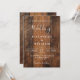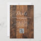 Este convite de casamento com fundo em madeira de celeiro rústico pode ser personalizado com suas informações em tipografia moderna e código QR do site de casamento no verso. Criado por Thisisnotme©