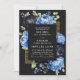 Convites Código QR de Casamento Floral Elegante Preto e Azu