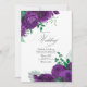 Faça uma impressionante primeira impressão com este elegante convite de casamento floral roxo e verde. Apresentando rosas roxos luxuosos, sofisticados sotaques verdes e um código QR moderno nas costas para fácil acesso aos detalhes do evento, este design é perfeito para uma celebração sofisticada. Totalmente personalizável, é uma maneira ideal de compartilhar os detalhes de seu dia especial com estilo e conveniência.
