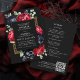 Faça a palco de um evento assombrosamente elegante com este convite gótico. Um luxo e luxuoso convite para o casamento floral, com um quadro de peões negros e vermelhos e bagas azuis contra fundo negro. Na parte de trás dos convites há um código QR RSVP e detalhes do casamento. É perfeito para uma celebração dramática e inesquecível. Eles são ideais para amantes do romance escuro e do atrativo do eterno. NOTA: O ouro representado neste design NÃO é folha REAL.