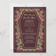 Faça uma declaração ousada de amor eterno. Este convite de casamento gótico apresenta 'Até a Morte nos Parte' em um quadro em forma de caixão, enfeitado com espinhos, rosas e sotaques dourados contra um fundo vermelho com seu próprio código QR na parte de trás do convite. Perfeito para uma comemoração romântica assombrosa! Personalize o texto, a fonte e a cor de fundo para se adequar às suas preferências de design. Correspondência de Itens em nosso compro para um tema completo de festa. Note que o ouro do convite NÃO é uma folha real e é impresso em cores planas.