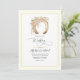 Celebre seu dia especial com este charmoso convite de casamento temático Western com toques de ferrugem, sage, marfim e luxo dourado. Com uma ferradura dourada adornada com delicadas flores rosadas e folhagens, este design exala elegância rústica. Combinado com caligrafia moderna e tipografia clássica, é a escolha perfeita para um casamento campestre com um toque de sofisticação. O verso apresenta um padrão inspirado em couro de vaca para um aceno extra ao tema Western. Fácil de personalizar para atender aos detalhes do seu casamento. Código QR no verso para rsvp e mais detalhes.