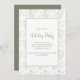 Esta design apresenta uma festa de Natal elegante floral, um padrão simples de flor verde, um código QR digitalizável no Facebook, fonte de script de caligrafia de na moda de tendências, estilo de texto tipográfico branco, verde simples botânico minimalista, folhas de folhagem de flores festivas, design tradicional moderno clássico, convites para festas de natal, corporações familiares se reúnem