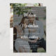 Um convite de casamento moderno e moderno, de dois lados, mostrando suas informações de casamento sobre uma de suas fotos favoritas com uma camada preta transparente, realçada por um roteiro elegante e branco. Facilmente personalizável com seus detalhes da cerimônia de casamento em branco para um olhar romântico, porém moderno e na moda. A parte de trás do cartão apresenta uma segunda imagem, as instruções de RSVP online e a data de vencimento, um Código QR personalizável para direcionar seus convidados para seu site de casamento, seus monogramas e sua data de casamento.