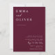 Este convite apresenta uma fonte de tipografia serif e caligrafia em bloco, limpa e simples, em fundo burgundy. A simplicidade e a design limpa deste convite funciona bem com todos os temas de casamento e definitivamente uma adição excelente ao seu casamento. Tente se tornar ecológico com este convite moderno, tudo em um, ecológico, reduzindo o RSVP adicional e os cartões de detalhes. Basta adicionar seu próprio código QR à parte traseira do convite para seus convidados para RSVP e descobrir mais informações sobre seu casamento. Personalize os nomes e o texto em apenas alguns passos fáceis e personalize o cartão de convite com sua foto do casal feliz para lhe dar um toque exclusivo e pessoal. Note-se que a elegante caligrafia dos termos "e" e "detalhes + rsvp" não pode ser editada, suprimida ou movida. Eles estão consertados. Se precisar alterar a cor, você pode personalizar o cartão de convite. Você pode personalizar e personalizar o convite para ajustado das suas necessidades de evento de casamento e clicar em personalizar o convite. Você pode personalizar facilmente este convite com seu próprio texto e compartilhá-lo com seus convidados digitalmente — seja através de texto, email ou mídia social. Se preferir, você também tem a opção de enviar uma versão impressa para seus convidados. Ou, você pode fazer ambos — enviar uma versão digital e acompanhar com uma cópia impressa para um toque pessoal!