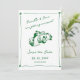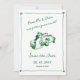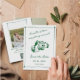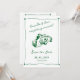 Este convite de "Salve a Data" verde desenhado à mão e caprichoso combina uma aparência artística divertida com conveniência moderna. Apresentando elementos delicados desenhados à mão, uma paleta de cores verde fresca, sua foto pessoal e um código QR embutido para fácil RSVP ou acesso ao site do casamento — é a combinação perfeita de charme e praticidade.