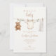 Este belo convite para o chá de fraldas apresenta uma linha de roupas para bebês e pode ser personalizado com seus detalhes definidos na tipografia do na moda. O reverso apresenta sua foto especial e um código QR de registro. Projetado por Thisnotme©