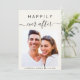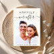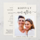 Um convite para casamento moderno, tudo em um creme claro, com sua foto, "Feliz Nunca Depois" em uma simples tipografia e um roteiro de chic com sucos e seus primeiros nomes e data de casamento juntos por um coração. No verso, personalize seu convite em tipografia elegante e insira seu endereço no site do casamento para criar um código QR para seus convidados digitalizarem para RSVP on-line e para obter detalhes adicionais de casamento, como acomodações e instruções.