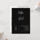 Este convite de casamento ao estilo minimalista moderno apresenta uma bela tipografia de escrita e fontes serif simples com fundo negro. É perfeito para qualquer tema de casamento. Substitua a foto e o código QR pelo seu na parte traseira do convite para lhe dar um toque pessoal agradável. Se precisar alterar a cor, você pode personalizar o cartão de convite. Você pode personalizar e personalizar o convite para ajustado das suas necessidades de evento de casamento e clicar em personalizar o convite. Você pode personalizar facilmente este convite com seu próprio texto e compartilhá-lo com seus convidados digitalmente — seja através de texto, email ou mídia social. Se preferir, você também tem a opção de enviar uma versão impressa para seus convidados. Ou, você pode fazer ambos — enviar uma versão digital e acompanhar com uma cópia impressa para um toque pessoal!