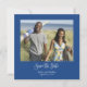 Convites Código QR de Foto Mínimo Branco Azul Salvar a Data