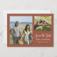 Esta laranja queimada mínima salve o cartão de data com um código QR facilita para os hóspedes obter os detalhes do seu dia especial. Duas de suas fotografias favoritas completam seu anúncio personalizado