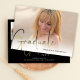 Este design apresenta um roteiro moderno de caligrafia tipográfica, um ouro preto-ouro duas fotos, com um código QR para fácil acesso à sua página de eventos do website, com uma camada elegante de texto de formando, um segundo grau elegante de tendência na moda, uma classe mínima e mínima, convites para formandos de graduação, tipografia de formandos e caligrafia, para anúncio de segundo grau ou faculdade, um convite festa de formatura limpo, estilo simples básico design