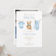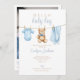 Este chá de fraldas bonito apresenta uma linha de roupas de bebê bonito azul e pode ser personalizado com seus detalhes definidos na tipografia do na moda. O reverso apresenta sua foto especial e um código QR de registro. Projetado por Thisnotme©
