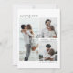 Deixe uma impressão duradoura sobre seus convidados com nosso convite contemporâneo e minimalista para salvar a data. Mostrando várias fotos cativantes do casal do casamento, este convite personalizável cria um tesouro. O verso mostra um código QR ligado ao seu site de casamento, onde os convidados podem RSVP online e acessar mais detalhes sobre seu dia especial. Este design refinado, porém simples, reflete o seu estilo único, ao mesmo tempo que informa os entes queridos da sua união iminente. Crie uma experiência de casamento inesquecível com este convite personalizado.