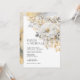 Convite para casamento de peônias florais de cor-d'água elegante e moderna. Dourado, cinza (cinza), cor d'água preta. Lava-aquarelle mármore/agate. Código QR para RSVP com site. Qualquer época do ano, estação. Modelos fáceis de editar. Ver coleção 'EVELYN'
