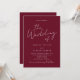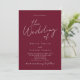Este convite de casamento moderno e minimalista apresenta uma elegante fonte manuscrita na frente. Ele brinca com a simplicidade de um design de tipografia preto e branco, adicionando apenas um toque de cor rosa claro. No verso do convite, você pode adicionar as informações do seu site de casamento, bem como um código QR para que os convidados o leiam. É a escolha perfeita para casais que apreciam elegância limpa e moderna.