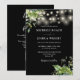 Este convite de casamento com luzes de corda botânicas de eucalipto elegante em preto e branco pode ser personalizado com suas informações em tipografia chic com o código QR do site do seu casamento no verso. Projetado por Thisisnotme©