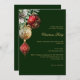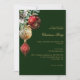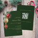 Convite de festas Elegante de Natal de Negócios com código QR na parte traseira para RSVP e detalhes. Convide sua equipe para celebrar a temporada de festas com este na moda e um convite de festas de Natal moderno. Com um fundo verde elegante, o design é belamente decorado com ruivos festivos e dourados, verde e um cone de pinho para um toque clássico. Personalize-o com os detalhes do evento de sua empresa para criar um convite profissional e sofisticado, perfeito para a reunião de feriados corporativos.