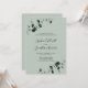 Convite de Recepção de Casamento com Código QR de Salvia com Folhagem de Eucalipto... Nosso convite de recepção de casamento botânico em salvia apresenta ramos elegantes de eucalipto com folhas em salvia e esmeralda criando uma borda natural para o texto do convite. O verso do cartão em salvia contém o URL do seu site de casamento e um exemplo de código QR que você pode facilmente substituir com suas próprias informações ao revisar o texto. Todo o texto de exemplo pode ser facilmente revisado com seus próprios detalhes no modelo de personalização. Este convite de recepção de estilo moderno foi projetado para ser elegante e econômico em tempo, criado especialmente para noivas atarefadas.