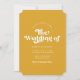 Este simples convite para casamento, em na moda, apresenta fotografias desenhadas na frente sobre um fundo de cor personalizado (mostrado em amarelo brilhante ouro). O dorso contém um design geométrico moderno, desenhado à mão, em azul escuro, cor de laranja, pêssego, ouro amarelo e amarelo-lilás claro/roxo. O verso também contém um modelo de código QR para direcionar convidados para seu site de casamento. Simplesmente Personalize o texto ou exclua-o, se não desejar.