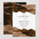 Impressione seus convidados com este convite de casamento luxuoso com um deslumbrante design de ágata marrom desértico e dourado. As texturas orgânicas fluidas imitam a pedra natural, realçadas com sutil brilho em dourado metálico para uma estética elegante e moderna. Perfeito para casamentos com tema rústico, terroso ou glamoroso, este convite personalizável combina sofisticação com beleza atemporal. O verso inclui um código QR personalizável, permitindo que seus convidados acessem facilmente detalhes do casamento, como links de RSVP, direções e acomodações.