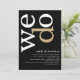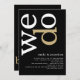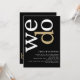 Código QR de Tipografia Moderna Casamento Branco Dourado Preto Adicione seu código QR ao site do seu casamento no verso para que seus convidados possam responder e ver todos os detalhes online sem a necessidade de envelopes separados. Um design tipográfico moderno com Nós Fazemos em tipografia grande girada e ao lado no topo em branco e dourado sobre um fundo preto. As cores do fundo e do texto podem ser alteradas se desejar através de Personalizar ainda mais.