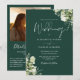 Este convite de casamento floral verde esmeralda elegante pode ser personalizado com suas informações em tipografia chic com sua foto especial, detalhes do site de casamento e seu código QR no verso. Projetado por Thisisnotme©