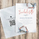 Esta design apresenta uma festa de solteira de caranguejo azul-aquarela, um fim de semana náutico de caranguejo fervendo-se, com um site de código QR online, e uma página de eventos sociais no Facebook ligaram um tema litoral oceânico vivo, um convite para festas de janto de frutos do mar, com texto de letra de tipografia de na moda, uma tipografia de escrita de caligrafia moderna, uma nova costa inglesa Maine, uma nova Inglaterra, uma festa de solteira branca ondas de água simples do oceano azul