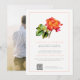 convite de casamento para pintura de aquarela rosa botânica. Personalize com seus próprios nomes uma foto nos detalhes da cerimônia de entrega e casamento, além do código QR para respostas fáceis. Apresenta uma arte de aquarela manual de chá híbrido listrado rosa em tons de laranja e rosa-vermelho com folhas verdes. Ideal para um casamento de rosa. Outros itens de casamento correspondentes estão disponíveis. © Impressão original de rosa de aquarela manual e design por Sarah Trett para www.mylittleedenweddings.com exclusivamente no Zazzle
