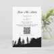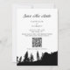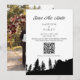 Convite de Código QR do Casamento no Pine Tree Mountain Save The Date. Personalize este design preto e branco com seus detalhes pessoais.