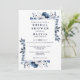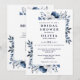 Este convite de chá de noiva floral azul marinho e branco pode ser personalizado com suas informações em tipografia moderna com o código QR do seu registro no verso. Projetado por Thisisnotme©