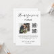 Código QR do Fundo Honeymoon e Convite para Casamento Fotográfico Este Sinal de Código QR do Fundo Honeymoon combina elegância moderna minimalista, fazer-o como uma adição perfeita ao seu casamento ou evento especial! Personalize as fontes, as cores da fonte e o plano de fundo para se adequar ao seu estilo exclusivo sem esforço.