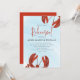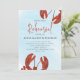 Esta design apresenta um convite simples para jantar ensaios de lagosta vermelha, com uma festa de assar de lagosta náutica, um mar oceânico litoral vivo, excelente para o evento de janto de marinheiros, um convite para o evento de festa de tipografia de na moda-tendências, um texto de tipografia moderna de caligrafia, com estilo costa Maine Nova Inglaterra de Maryland, enquanto pernas de lagosta cozidas, um elegante oceano de água na moda-divertida, com um marinheiro azul-crustáceo, com água azul, oceano, convite náutico marinho