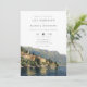 Este convite de casamento elegante em aquarela do Lago Como pode ser personalizado com suas informações em tipografia sofisticada com o código QR do seu site de casamento no verso. Projetado por Thisisnotme©