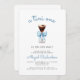 Este convite de chá de bebê moderno apresenta uma ilustração em aquarela de um martini de espresso adornado com um laço azul. Acima, as palavras "um tini" aparecem em escrita manual casual azul. Personalize o texto com o nome da futura mamãe em escrita azul e os detalhes em fonte sans serif cinza carvão. O verso fornece espaço para sorteio de fraldas, livros para o bebê e detalhes do registro, juntamente com um código QR conveniente que os convidados podem escanear para visitar o registro. Ideal para um chá de bebê de menino.