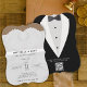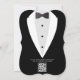 Convite de casamento com terno preto e gravata de bolso e código QR de rsvp. Personalize-o com os detalhes do evento.