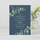 Eucalyptus Greenery foliage coloração aquosa moderna e elegante convite para o casamento do jardim contemporâneo. Simples design botânico contemporâneo. Primavera, outono, outono e cerimônias de casamento mais brancas e verdes, azul marinho, preto e branco elegantes. Com espaço no verso para um código QR para vincular a informações do site.