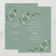 Eucalyptus Greenery foliage coloração aquosa moderna e elegante convite para o casamento do jardim contemporâneo. Simples design botânico contemporâneo. Primavera, outono, outono e cerimônias de casamento mais brancas e verdes, azul marinho, preto e branco elegantes. Com espaço no verso para um código QR para vincular a informações do site.