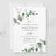 Eucalyptus Greenery foliage coloração aquosa moderna e elegante convite para o casamento do jardim contemporâneo. Simples design botânico contemporâneo. Primavera, outono, outono e cerimônias de casamento mais brancas e verdes, azul marinho, preto e branco elegantes. Com espaço no verso para um código QR para vincular a informações do site.