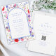 Linda e colorida página de casamento da arca azul de flor silvestre, código QR para convite online do rsvp com florais de cor d'água, ideal para casamento ao ar livre de primavera ou verão. Um design caprichoso, mas na moda, com um roteiro de tipografia moderno, com fácil personalização de modelos em azul de córnfo. As pinturas de flores silvestres incluem papoilas vermelhas vibrantes, flores de milho, flores de cosmos, nódulos e botões de billy em roxo, rosa, pêssego, verde-sábio, verde, laranja e azul. Trabalho de arte original de botânica pela artista Catherine Sweetman