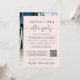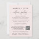 Convite elegante em tom de rosa claro para casamento íntimo ou anúncio de casamento e recepção ou festa de celebração. Na frente, "Festa Feliz para Sempre" está escrito em uma mistura de tipografia simples e um script elegante com floreios, e você pode personalizar sua mensagem e convite com mais detalhes, criar um código QR vinculado ao site do seu casamento para que os convidados façam uma varredura para obter mais informações e responder online, e adicionar seus nomes em um script semelhante a uma assinatura. O verso apresenta sua foto de casamento favorita, seus primeiros nomes e as datas do casamento e da recepção.