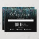 RSVP Abstrato Moderno - Uma guirlanda ousada e brilhante em azul-teal cascata abaixo da página, em caligrafia manuscrita está "nos avise" - iniciais do casal no topo - o resto do texto é simples e limpo - tudo em um fundo preto. Papelaria de casamento elegante.