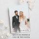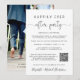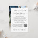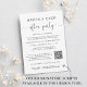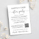Fuga romântica elegante ou anúncio de casamento íntimo e convite para recepção ou festa de celebração de casamento. Na frente, "Festa Feliz para Sempre" está escrito em uma mistura de tipografia simples e uma escrita elegante com floreios, e você pode personalizar sua mensagem e convite com mais detalhes, criar um código QR vinculado ao site do seu casamento para que seus convidados o leiam para obter mais informações e responder online, e adicionar seus nomes em uma escrita semelhante a uma assinatura. O verso apresenta sua foto de casamento favorita, seus primeiros nomes e as datas do casamento e da recepção.