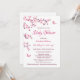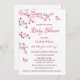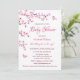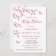 Este convite de chá de fraldas para meninas apresenta flores bonito de cereja rosa e uma borboleta fofa sobre fundo branco e um roteiro caligráfico elegante.