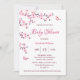 Este chá de fraldas bonito apresenta flores bonito de cereja rosa e uma borboleta fofa sobre fundo branco e um roteiro caligráfico elegante. Com um código qr digitalizável no local traseiro para seu registro de presentes.